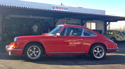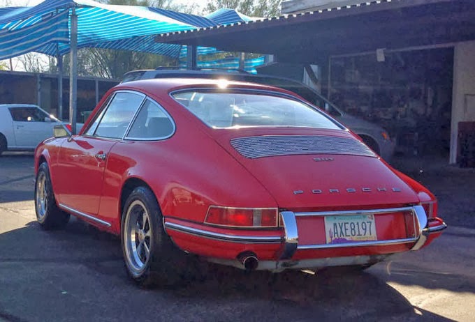 Buy Classic Volks – Porsche 911T Coupe for sale in Arizona. Used 1970 Porsche 911T, Very Good condition on Red color with Black leather Factory Sports Seats. This is a 1970 911 T Numbers matching one owner car. It was purchased new in Tucson, Arizona where it has stayed since 1970. The original owner’s manual and the original warranty booklet are in the glove box along with invoices dating back to the 90’s. This car is red over black which is the original color. It has had one paint job since new. The carpets were replaced at this time with a mouse gray color. It is not original style carpet but looks very nice! The door pockets and other panels are original. The headliner was redone in black. The dashboard is a 1977 style with the center air vent. The seat upholstery and panels all seems to be original. This car was brought out of storage after eight years and received a new engine rebuild from Redline Service about two years ago and has less than 2000 miles since. The car had a custom AC system put in it in the 90s and works great. This car also has a front external oil cooler and Alloy front RS type brake calipers.