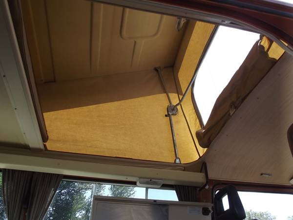 Pop Top- The pop top canvas new. There is none of the typical mildew stains on the pop top felt headliner. upper bunk sleeps 2 and the pad is in excellent condition. The fiber glass top is in excellent original condition as well.