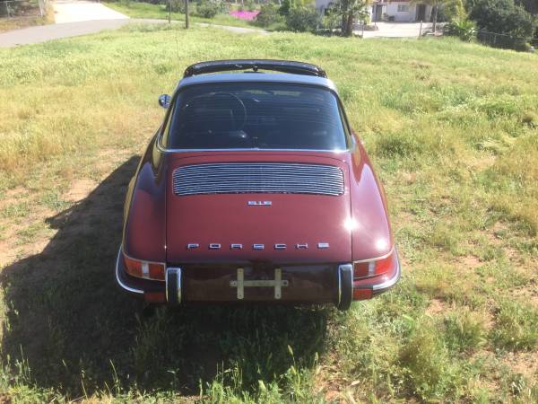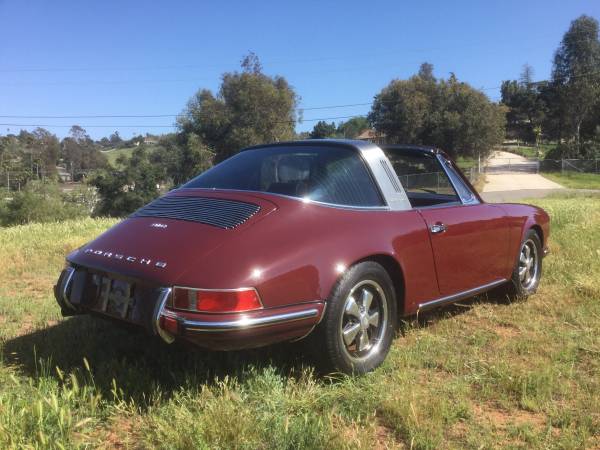 1969 Porsche 912 targa Matching numbers with COA Burgundy Red #6808, black interior 83,000 original miles No rust car with all original floor pans Fuchs 15×6″ wheels Blaupunkt Frankfurt radio All original interior Tool kit/Owners manual/Tire jack/Spare included/original targa storage bag. Last and best year of the 912 in the desirable targa body. This is an above average, solid, never rusted California car that eventually made its way to Washington all while being a weekend driver. The condition of this car shows that it has been stored in a closed garage all of its life. The mileage of 83,000 appears to be original based on my experience and the number of 912s I have owned – I am a charter 912 Reg member and one of the first 100 members to start the club back in the late 90s so I have been around these cars a long time. Looking under this car you will be amazed at how clean and original the floor pans are, never any rust and never damaged which is very important on a convertible, makes for a quiet smooth ride. This car has been repainted in the past, the current paint is very good to excellent but not a show condition job. You can expect a couple flaws in the paint as any old car has and there is a ding in the passenger door but when compared to most all other 912s for sale this one looks great. Gaps are good and all doors and hoods shut properly. The interior is all original and a testament to the mileage of the car. Targa top is in great shape, it folds up and goes in the truck when in convertible mode, also included with the car is the very rare to find targa top storage bag. Some other mentionable items are: original Sigla windshield, no cracks in the dash, it has door pockets, original Bosch turn lenses. In the trunk there is a chrome steel wheel for a spare, again no rust even under the battery, a tire jack is included, and importantly the original tool kit is present with most of the original tools – this is a $2k value right here in case you have not been looking at original tool kits lately. I just did a service on the car and removed the engine to clean out the old sound pad in the engine compartment, it has a new correct 3 piece engine sound pad now in place. The engine was washed off, oil changed, oil filter can cleaned out with new filter added, new air cleaners, valves adjusted, carburetors rebuilt. She runs strong, shifts nicely, and is ready to be used as a driver in current condition. I have a clean Washinton title, the car comes with a COA proving the matching numbers, original owners manual and finally the original keys for ignition, door locks, and trunk lock. Look over my pictures and send me your questions or offers. I can help ship the car worldwide or anywhere in the USA. I am a PCA member, 911S Reg member, 356 Reg member and long time Porsche enthusiast so have no fear in purchasing from me.